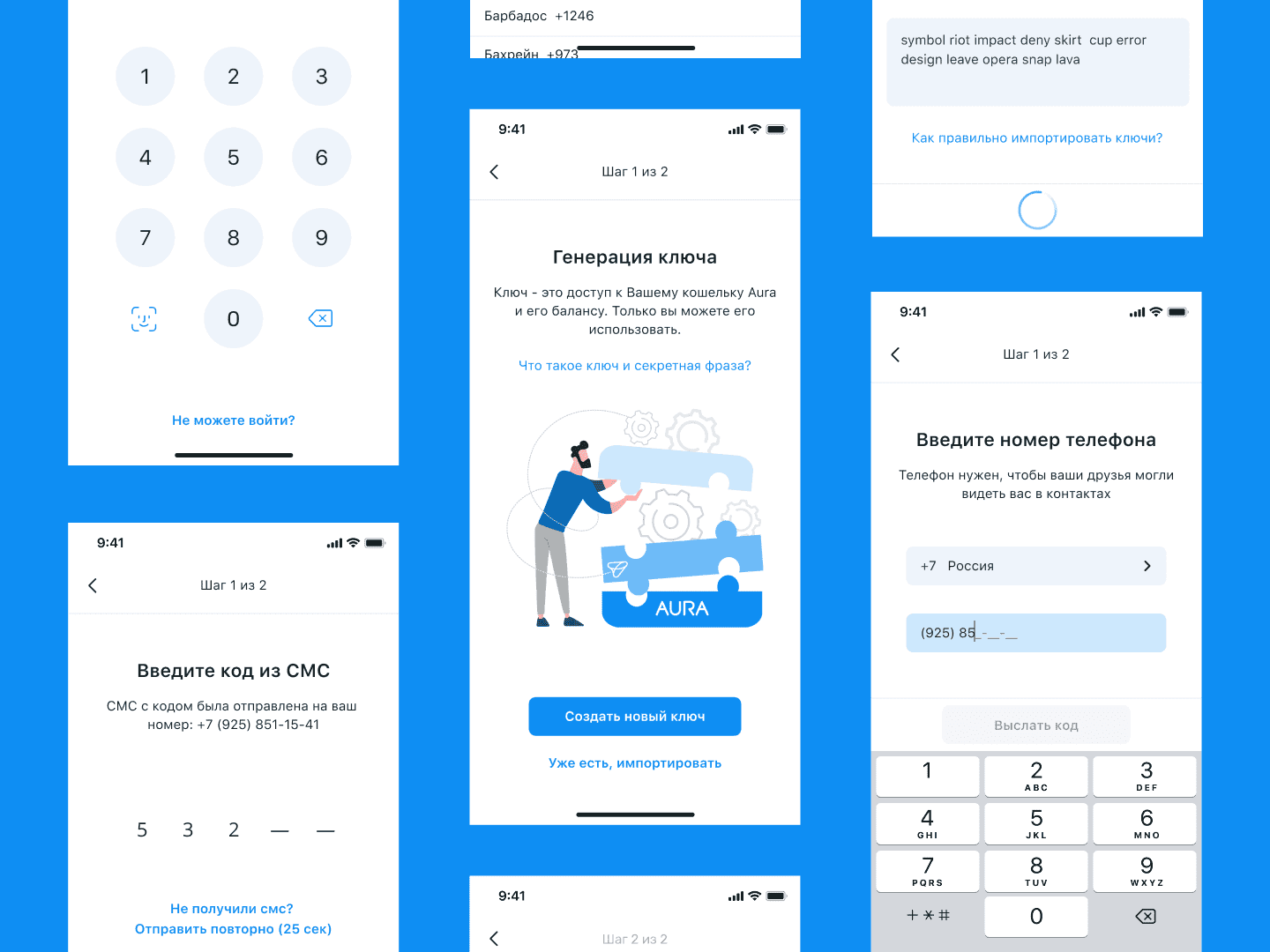 Over 20 screens were designed, covering onboarding, authorization, registration, key creation and import, as well as the subsequent login flow.