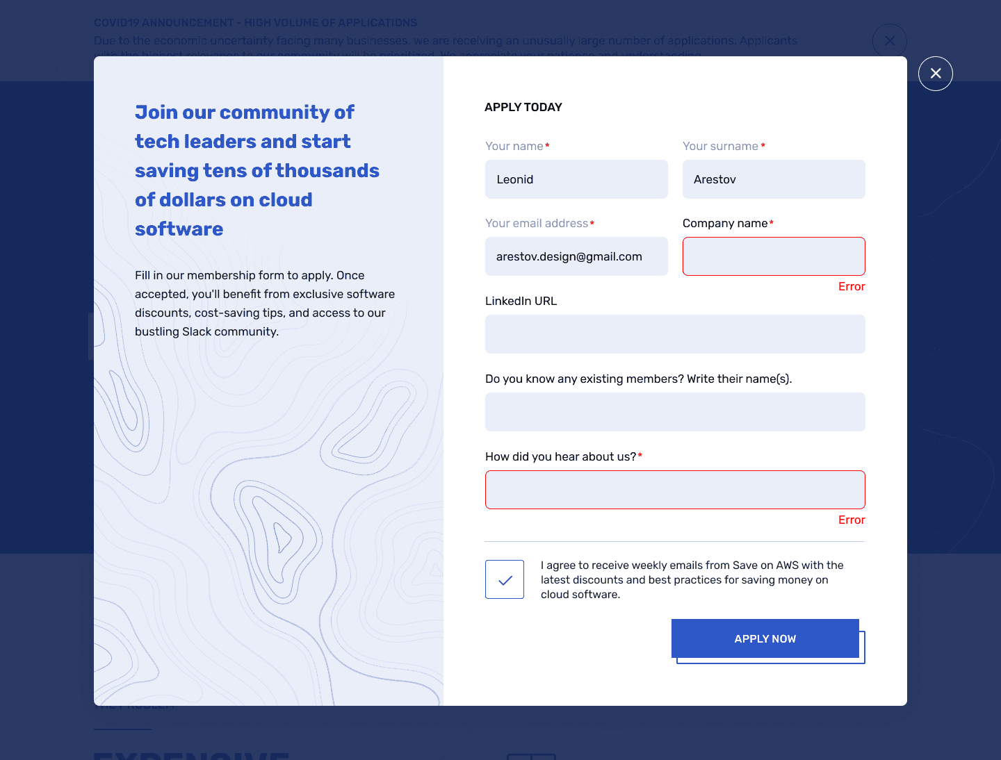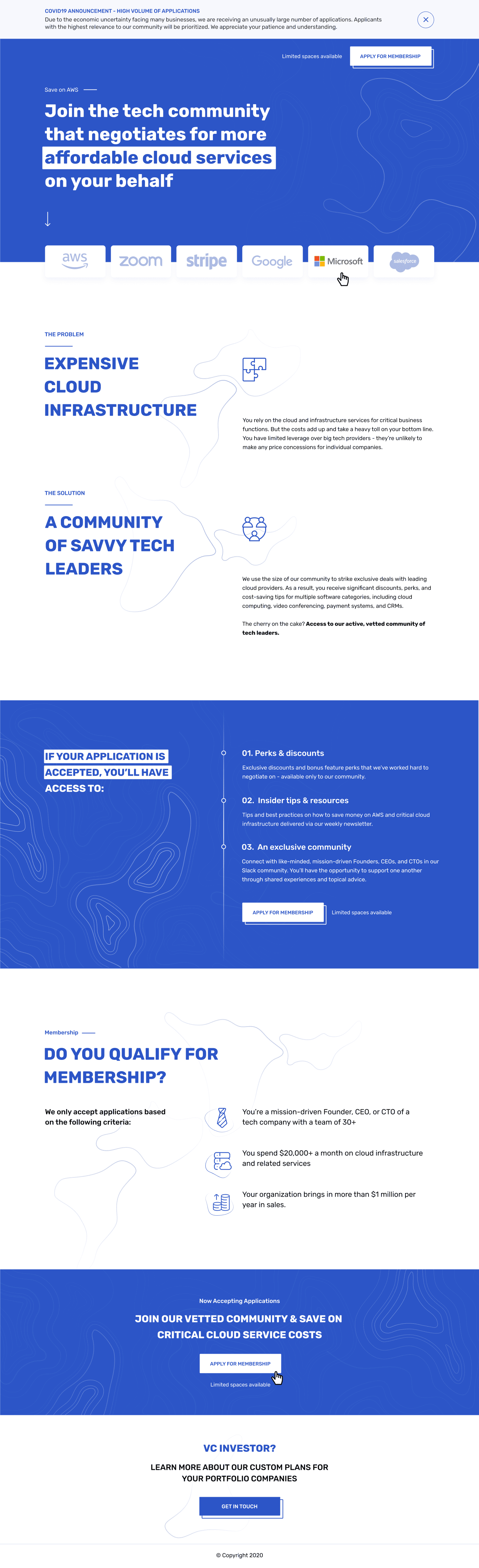 AWS Leaders Club is a private community for professionals and founders in the cloud technology space. The project needed a landing page that feels clean, open, and modern, reflecting the idea of transparency and simplicity.