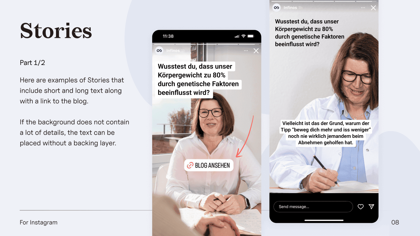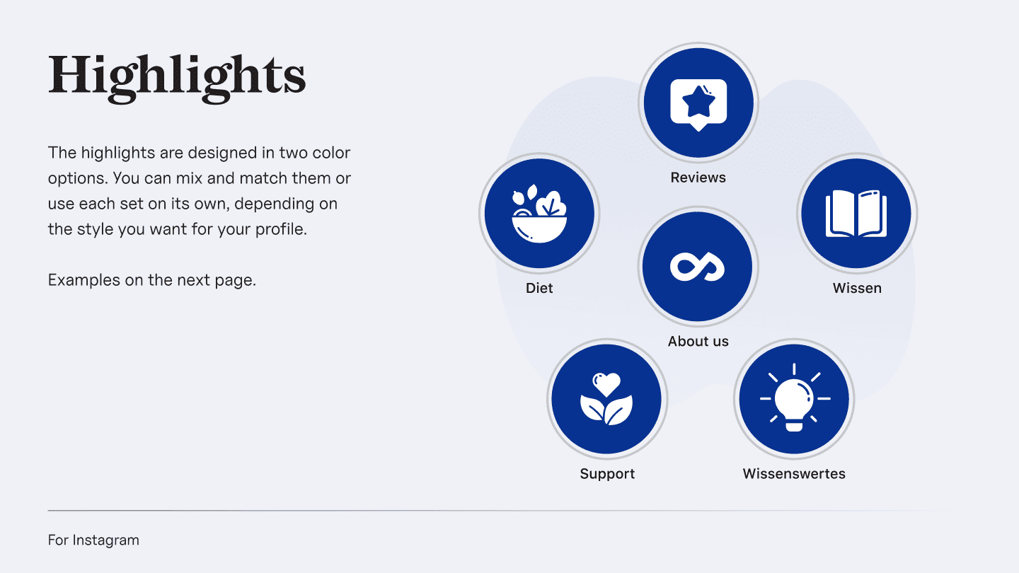 Here are several key screens from the brand book that demonstrate the visual system and the styling developed for the Instagram account.