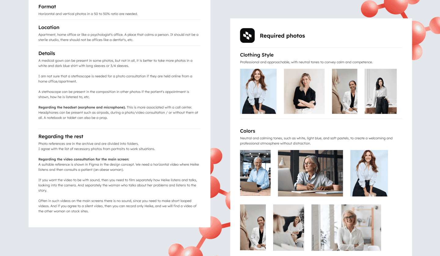 Additionally, prepared a detailed photo-shoot guidelines document that included locations, clothing styles, poses, and reference compositions. This ensured that the main characters of the website were photographed in a professional, trustworthy, and stylistically unified way.