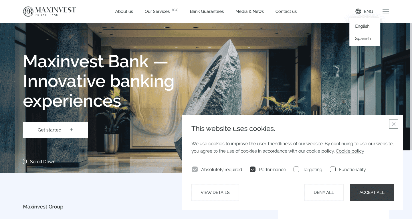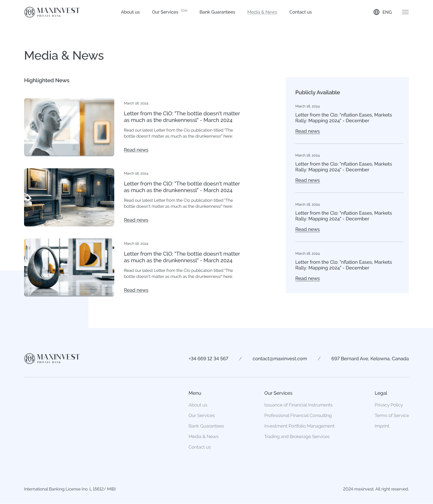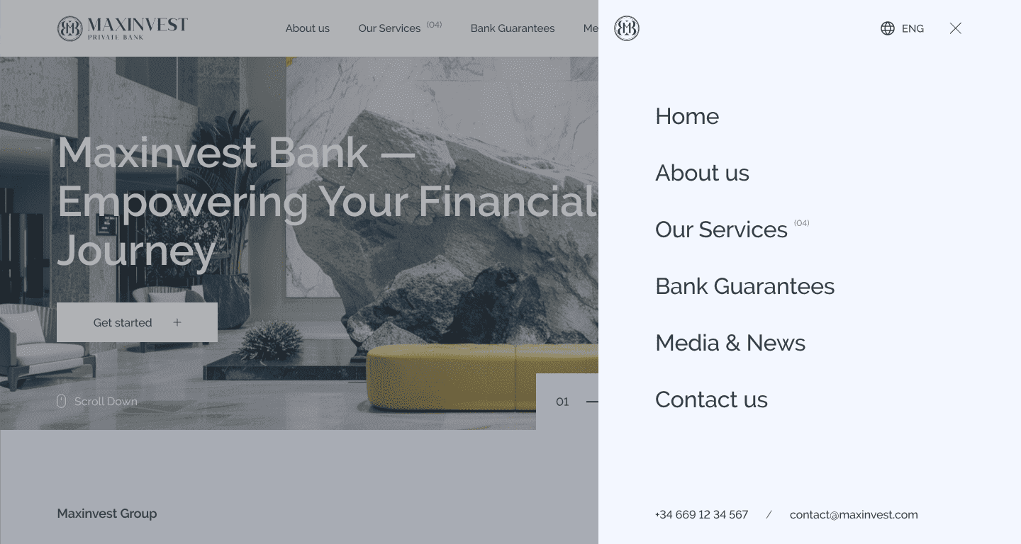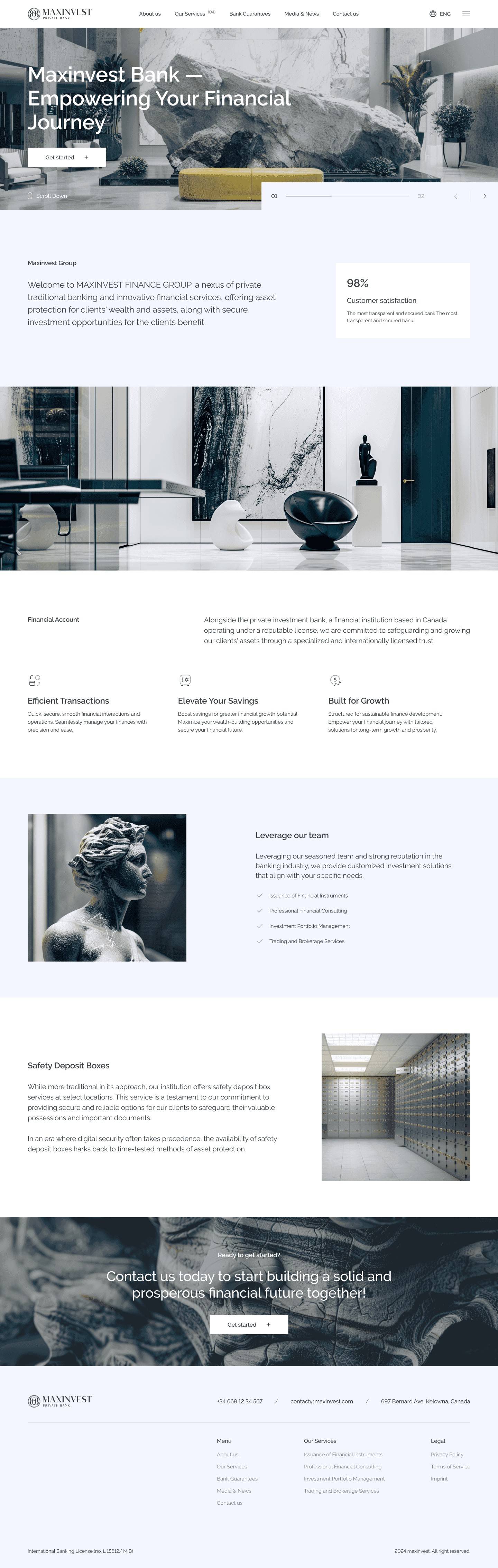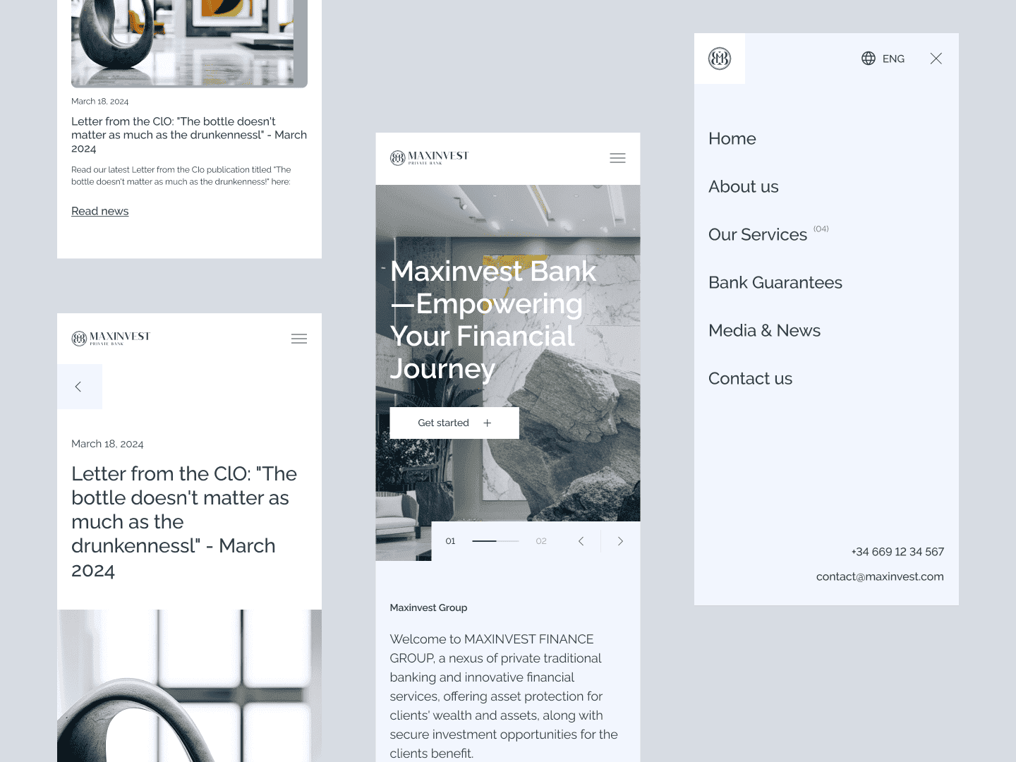 The project included creating logos and websites for a financial group operating in banking, fintech, trust, and PLC sectors. The goal was to keep a consistent and minimal visual style across all directions while maintaining a clear brand identity.