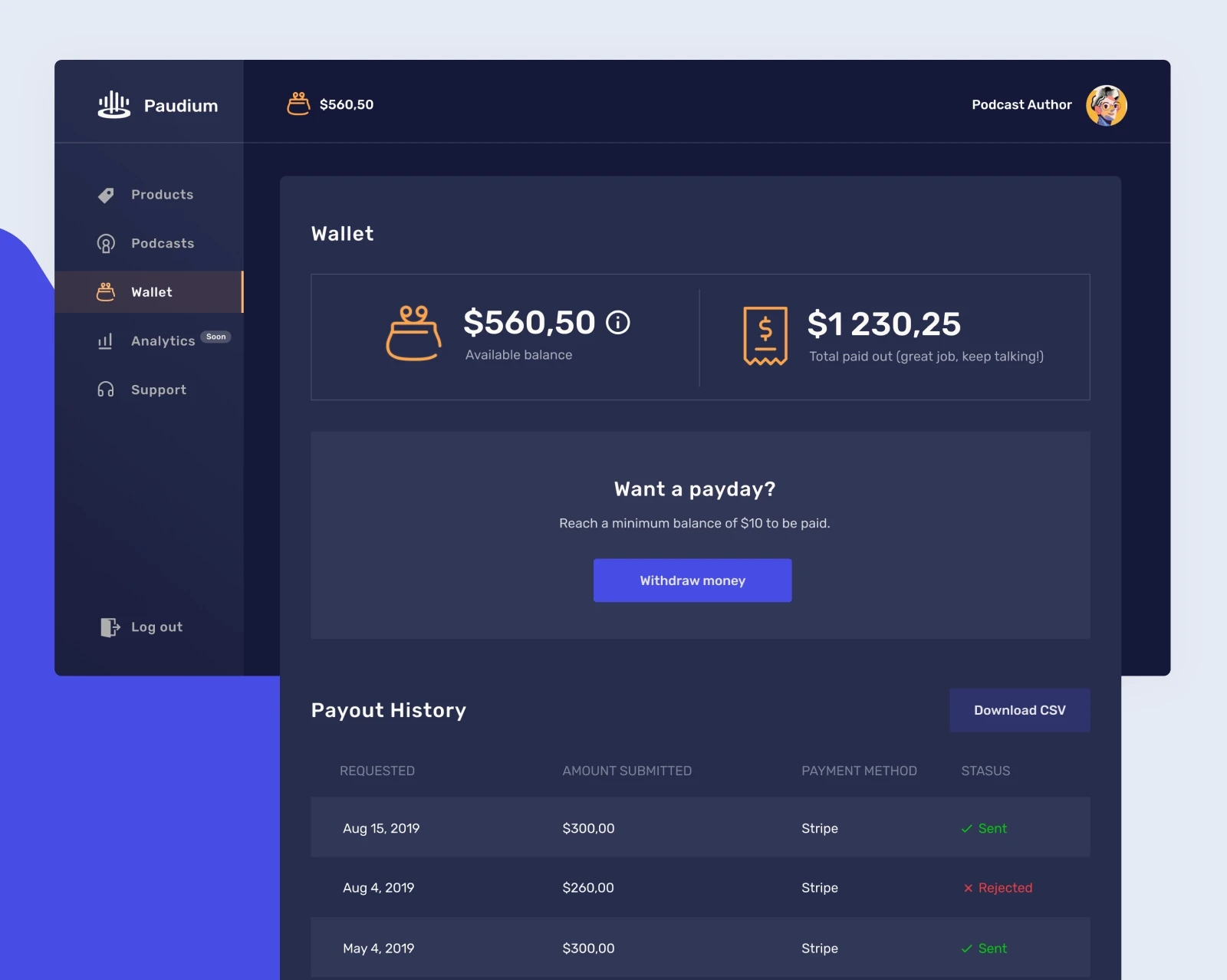 Worked as a product designer. Designed the mobile app for iOS and Android, as well as the website and the podcaster’s personal dashboard.