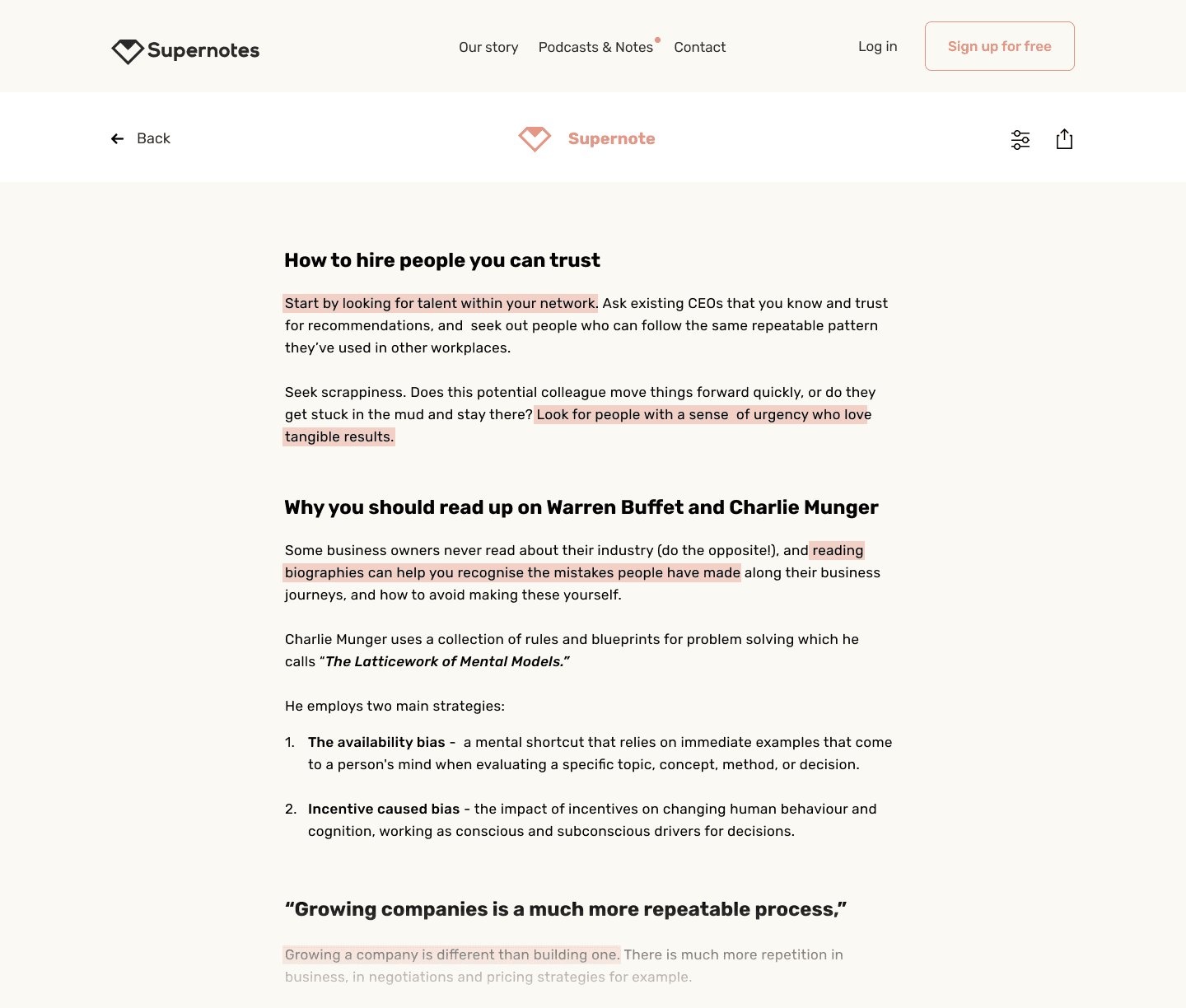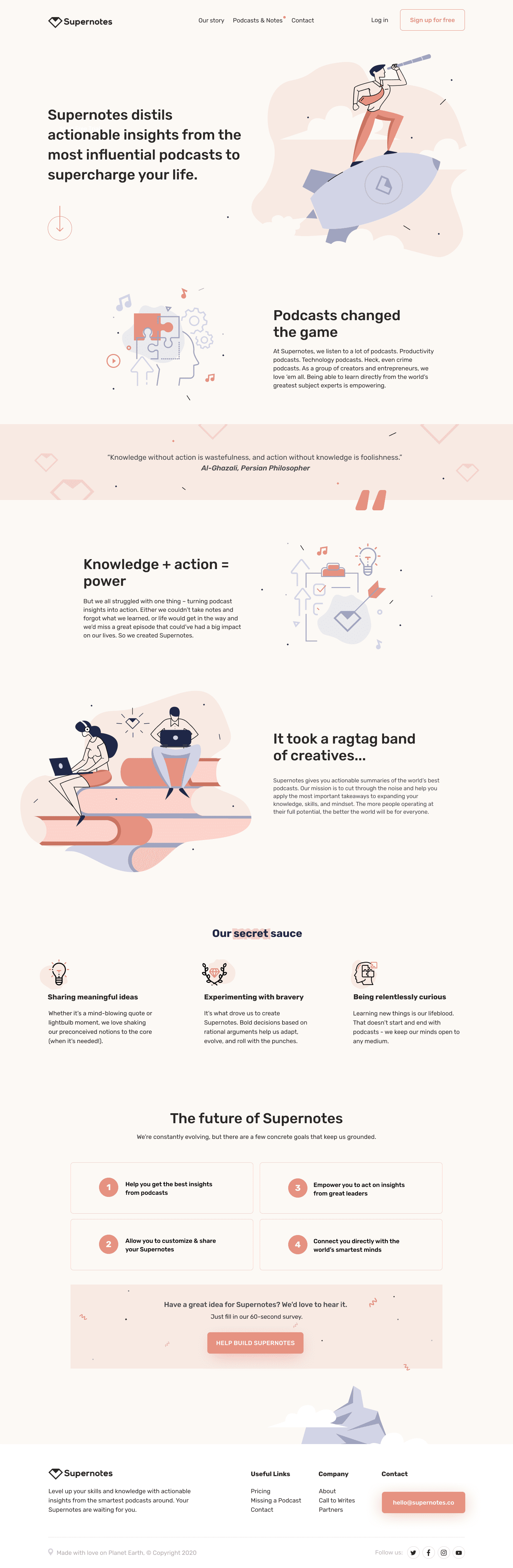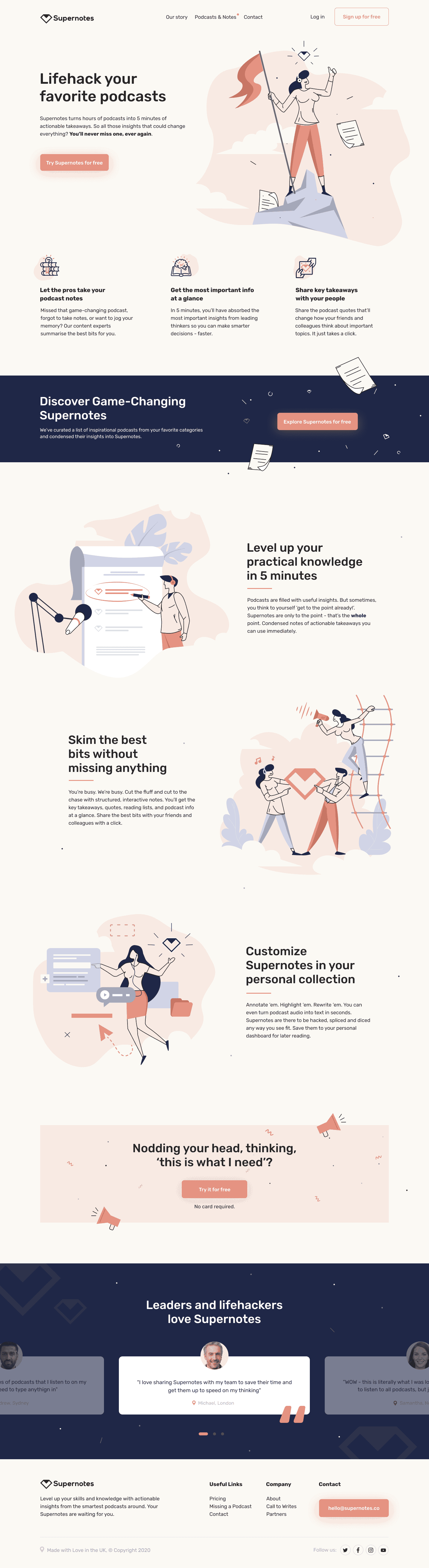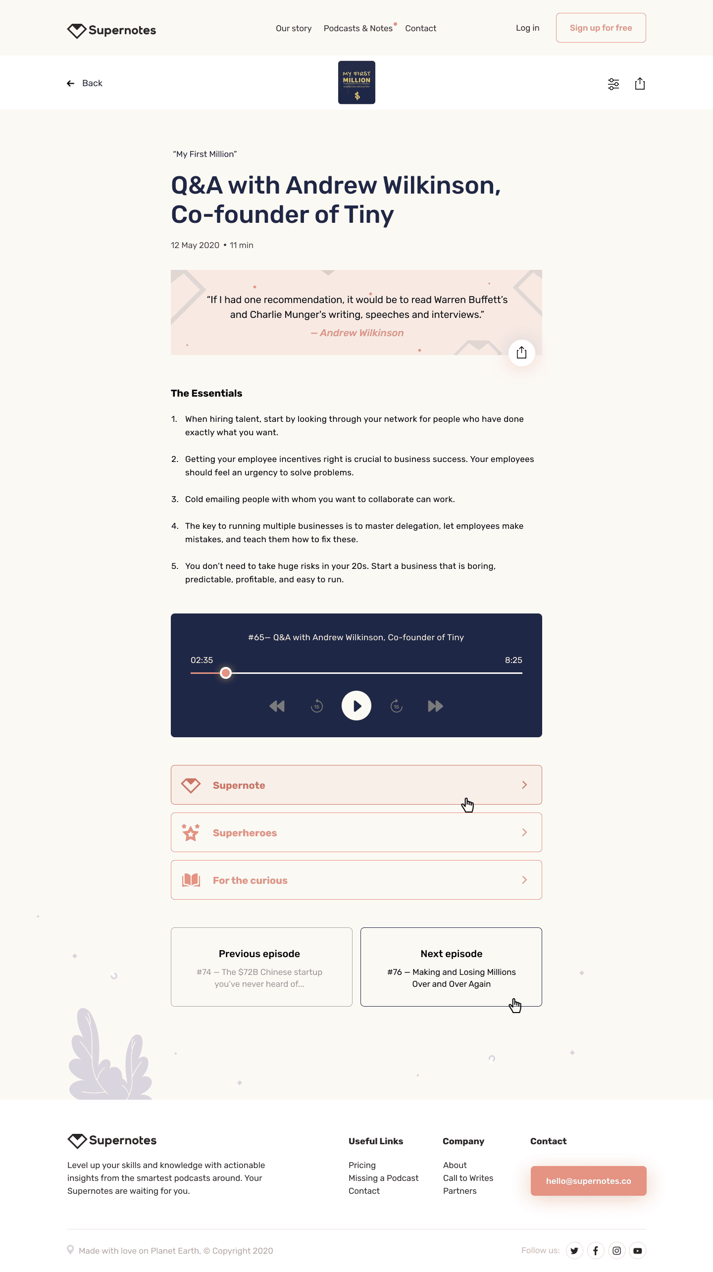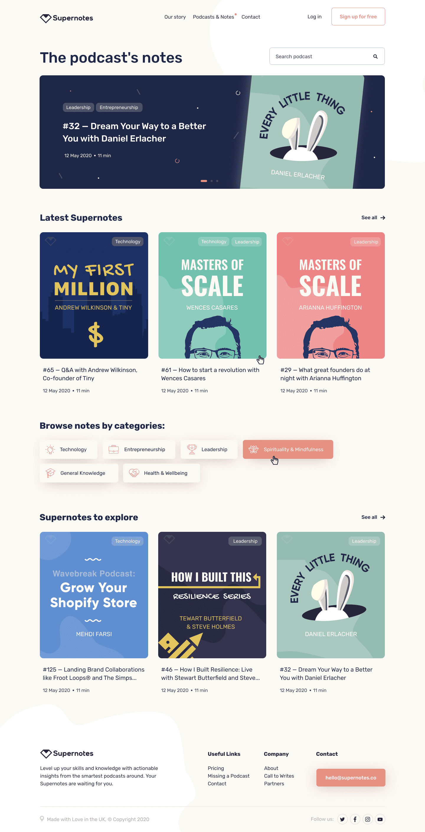 Supernotes is a platform that turns long podcasts into short summaries. The goal was to design a lightweight and friendly interface for both web and mobile that feels fast, intuitive, and easy to use.