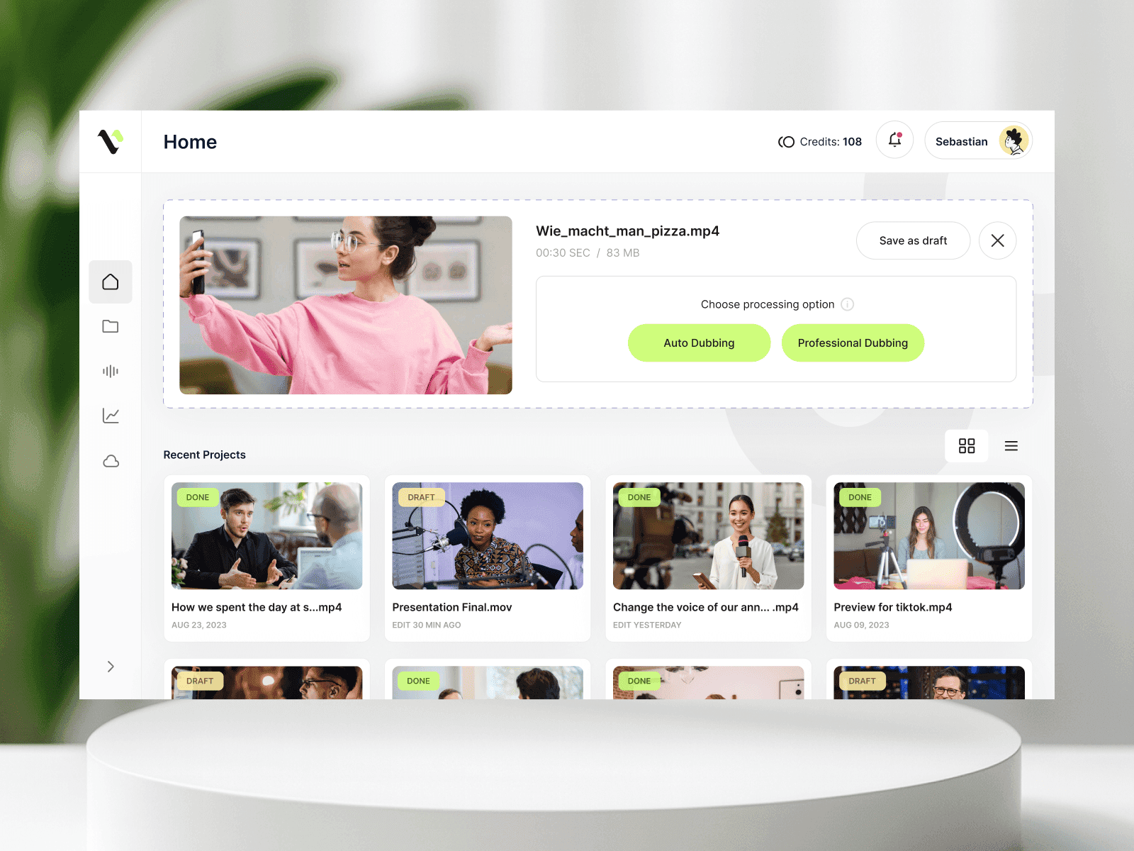 The project was an AI-powered video dubbing platform. The client provided a wireframe with the basic structure and product idea.